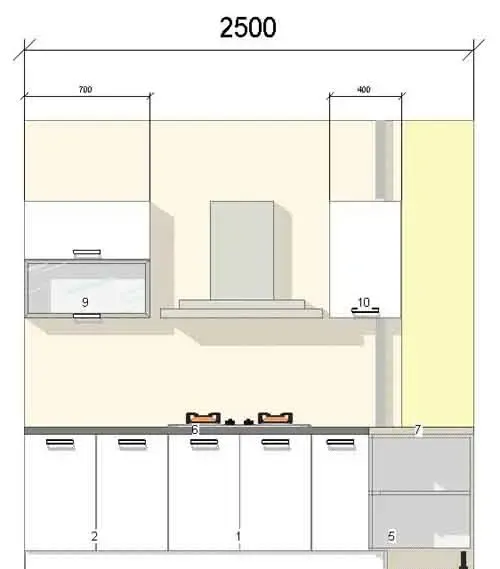 按照黄金分割观点,油烟机宽度占墙面长度的0.382比较合适。